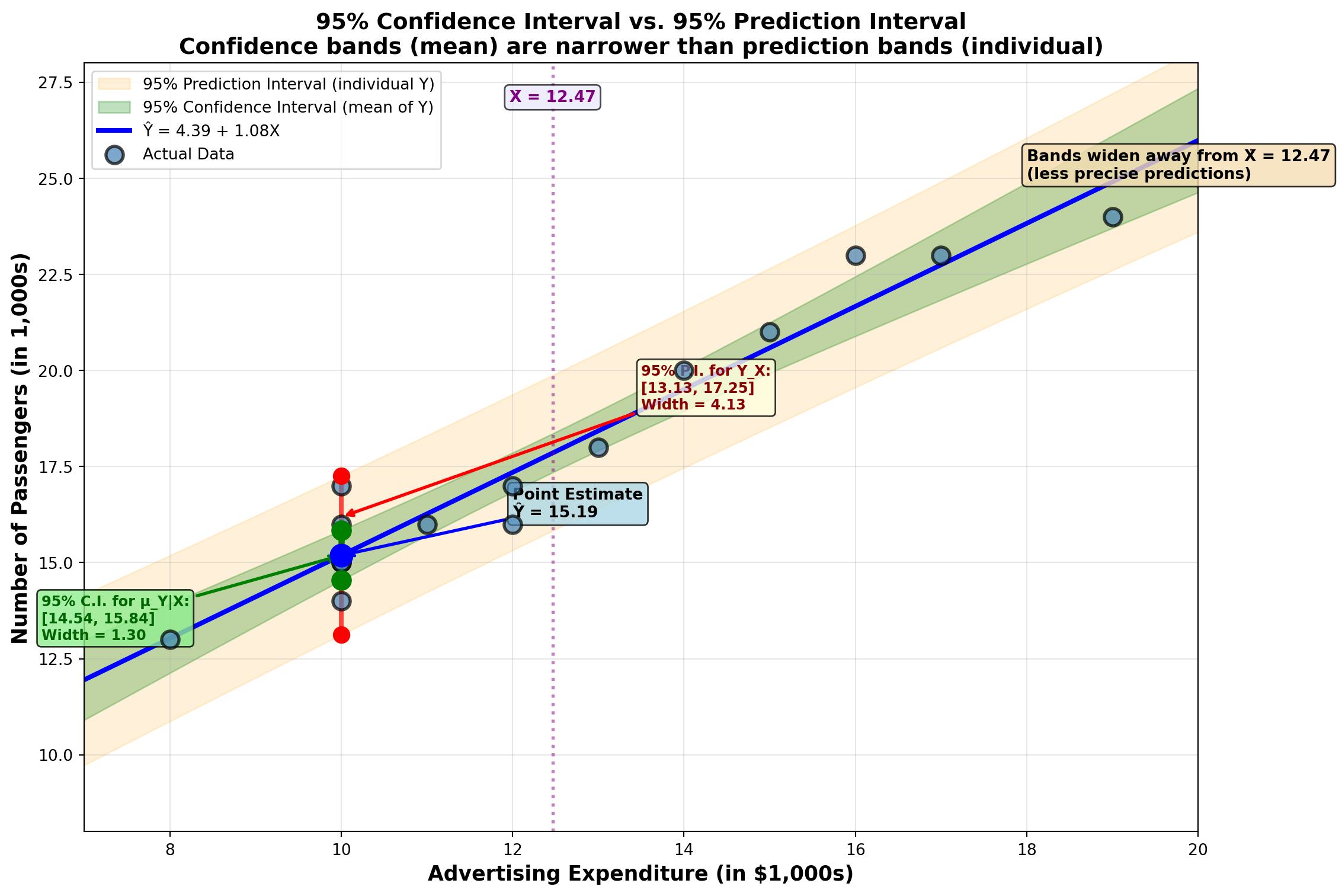 | Point Estimate | Single prediction | \hat{Y} = b_0 + b_1X | 15.19 |