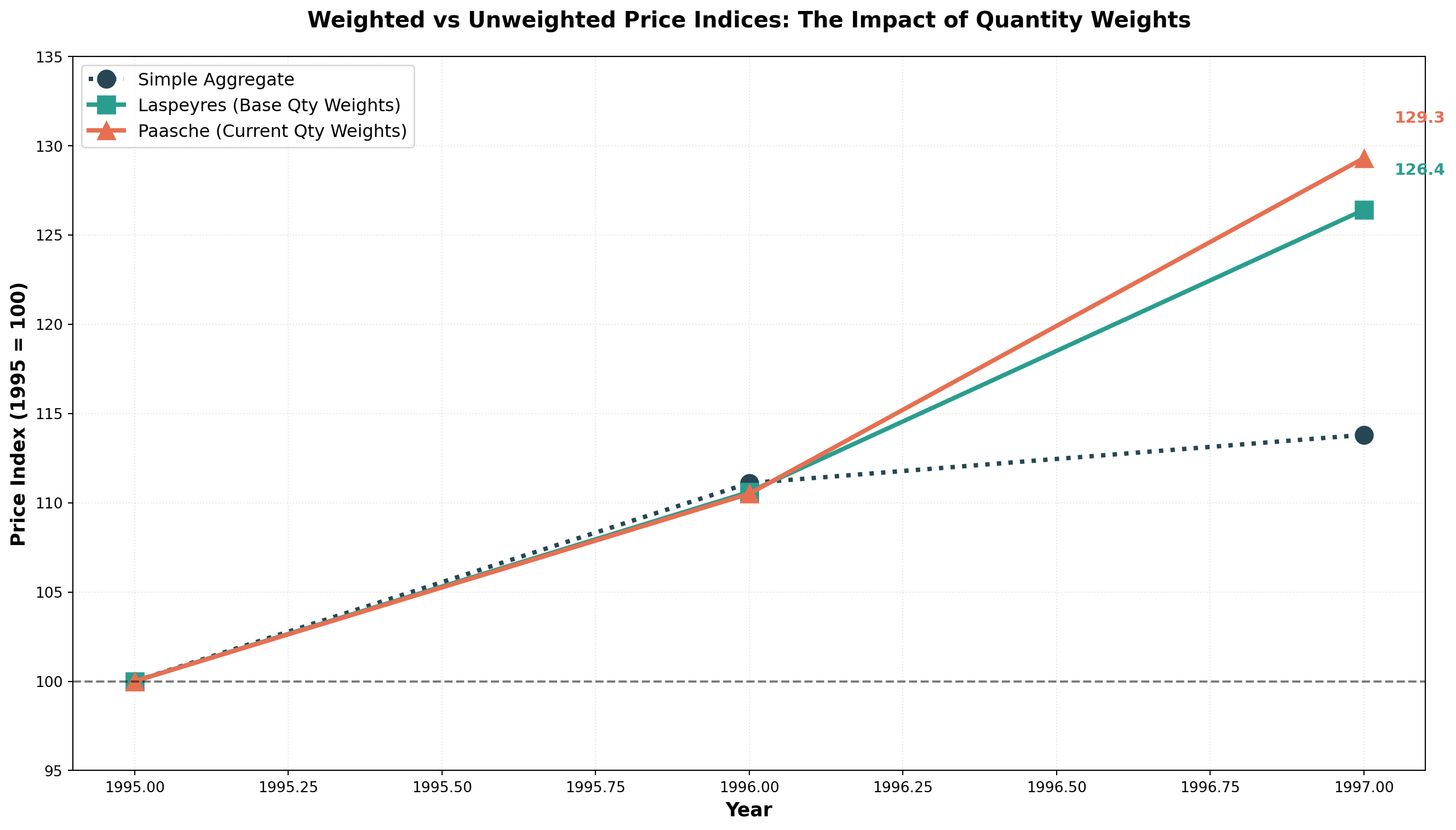 - Laspeyres Index: Weighted by base period quantities