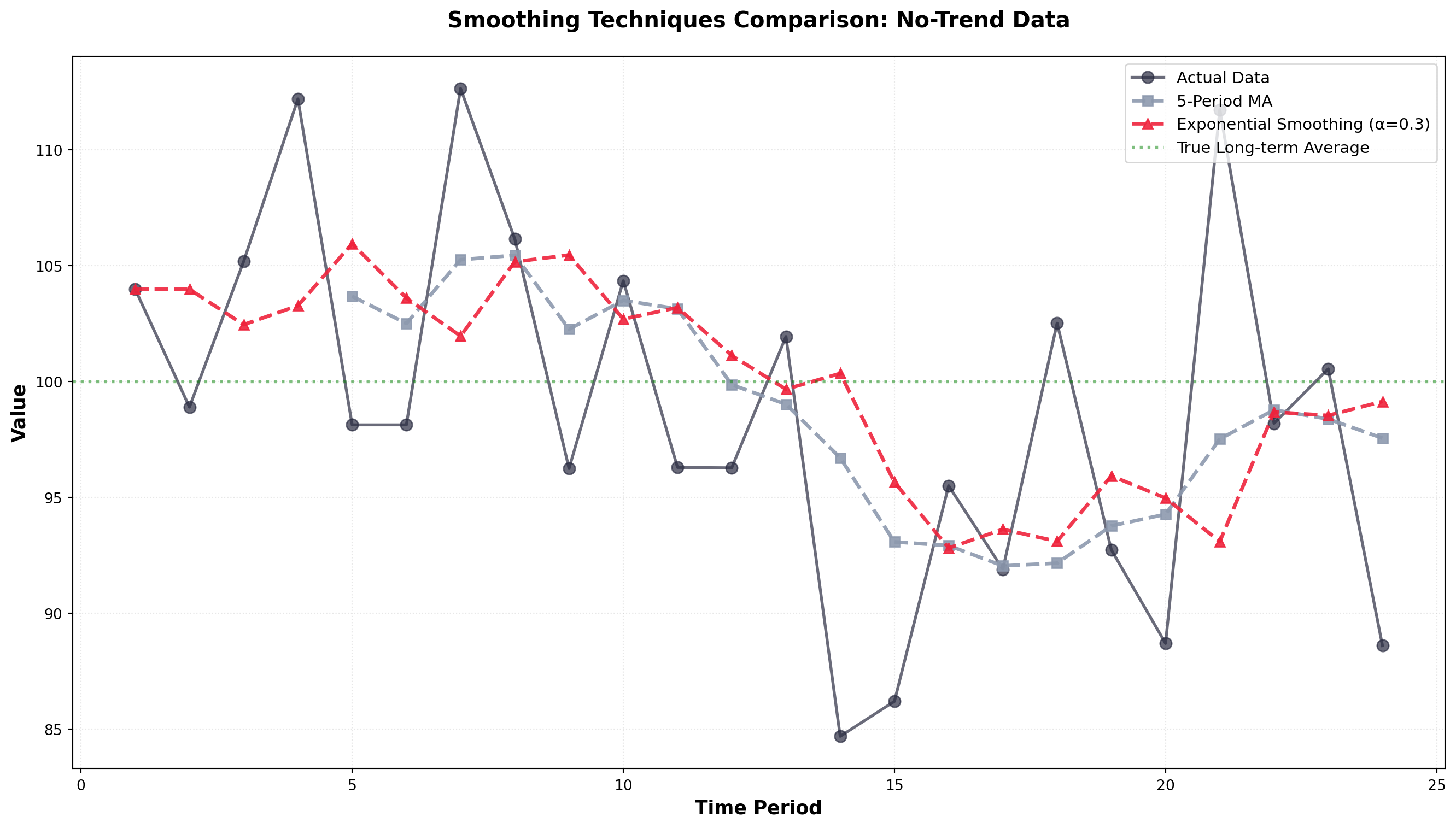 - Moving Averages: Average over fixed number of periods, eliminates seasonality when window = seasonal cycle