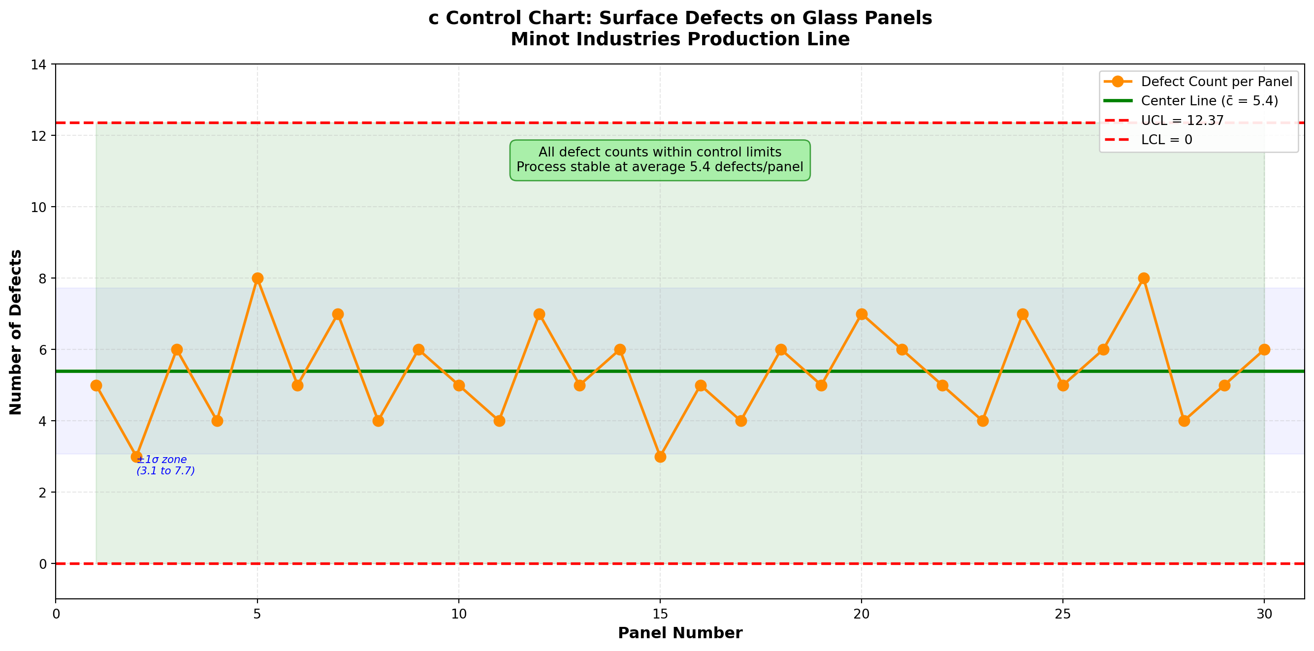 - Added c-charts for glass panel defects (Example 15.6)