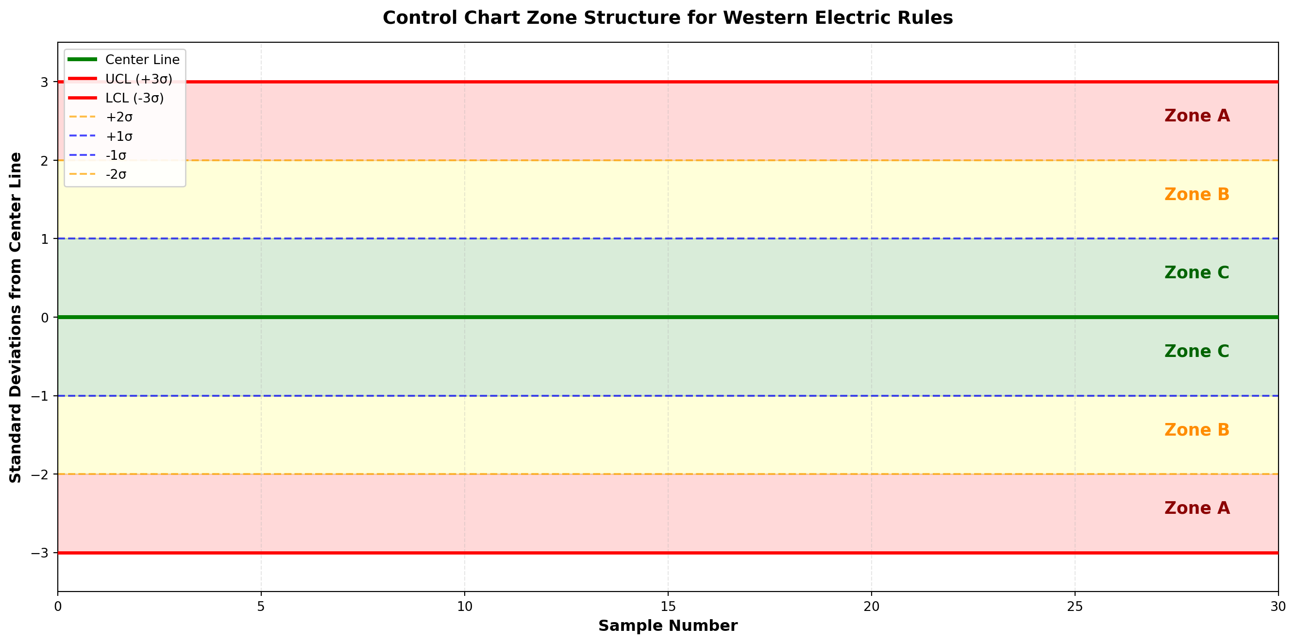 Western Electric Rules: Set of eight pattern recognition rules for detecting out-of-control conditions on control charts