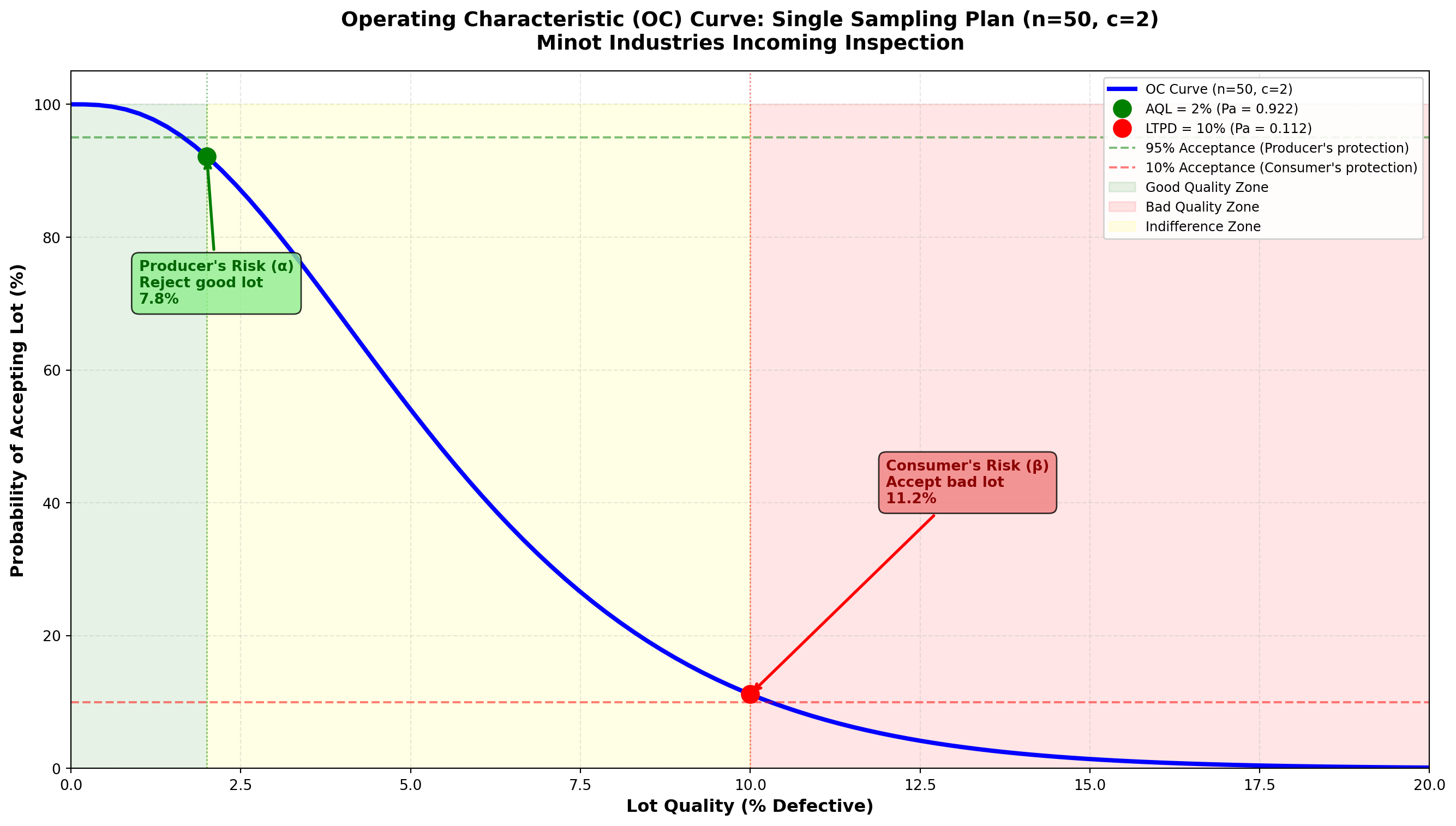 Producer’s Risk (α): Probability of rejecting a lot that should be accepted (Type I error)
