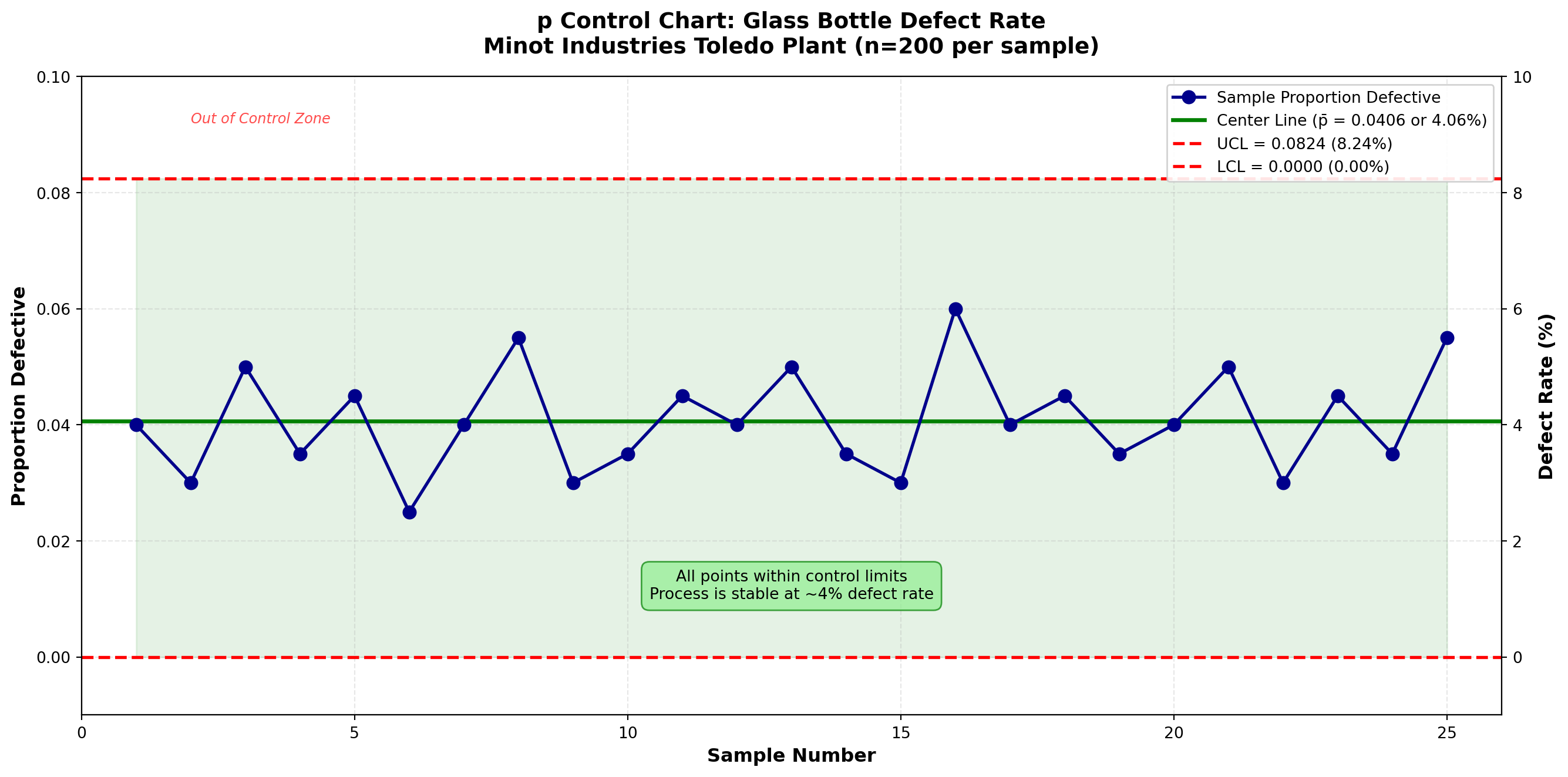 - Result: Process stable at 4.06% defects (below 6% crisis level)
