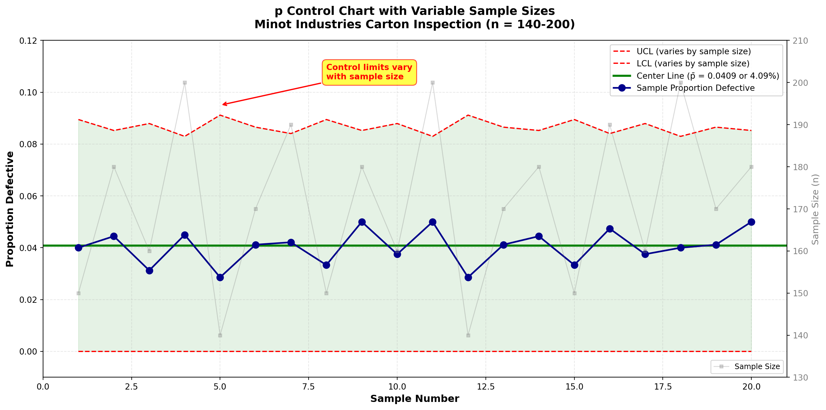 - Implemented p-charts for defect rates (Example 15.4)