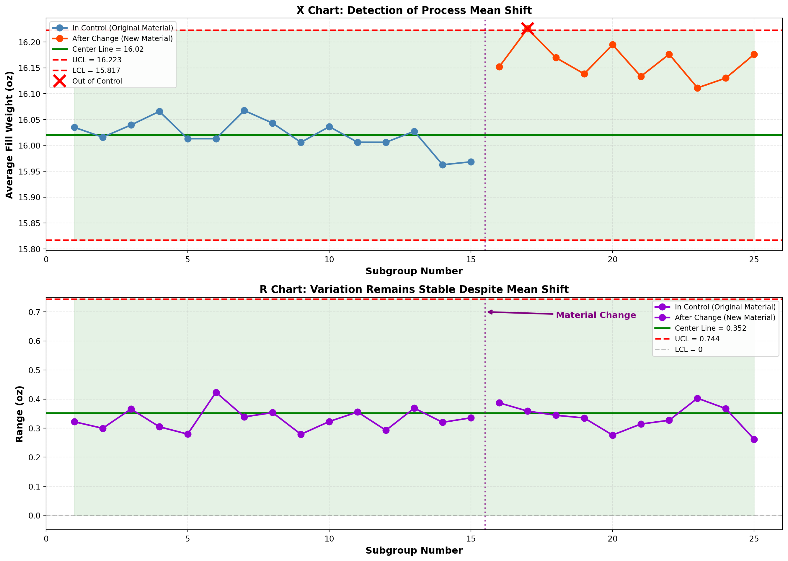 - Result: Detected material change causing mean shift