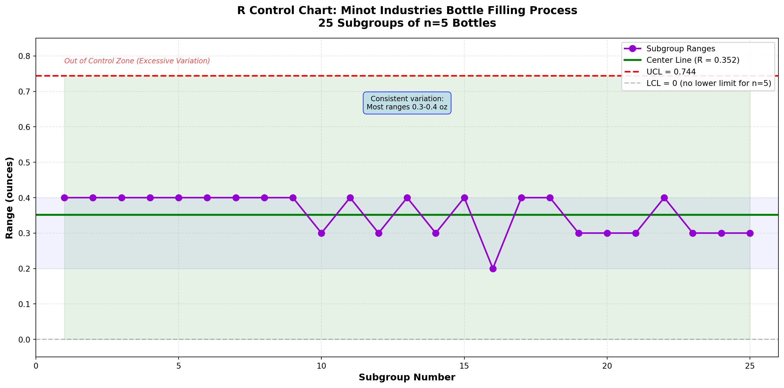 - Installed X̄ and R charts on bottle filling line (Example 15.1-15.2)