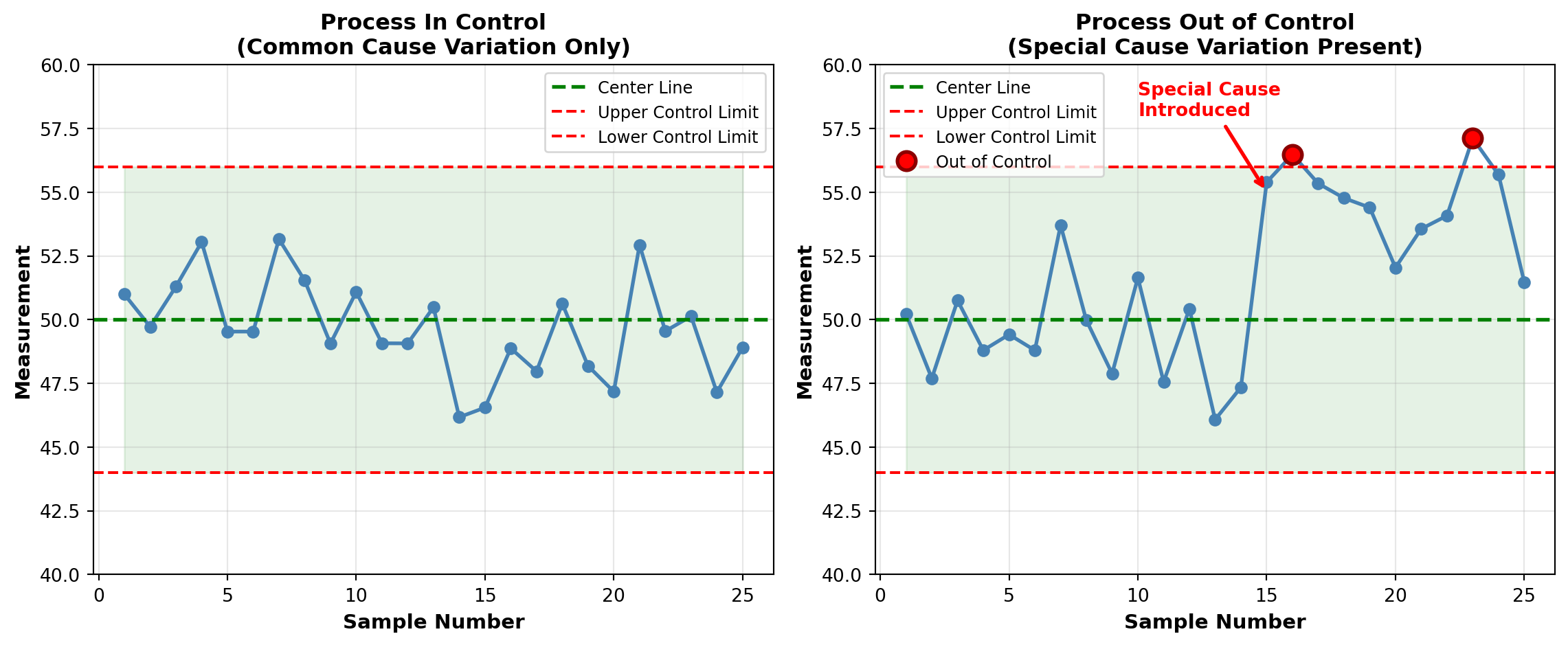# Right plot: Special cause variation introduced