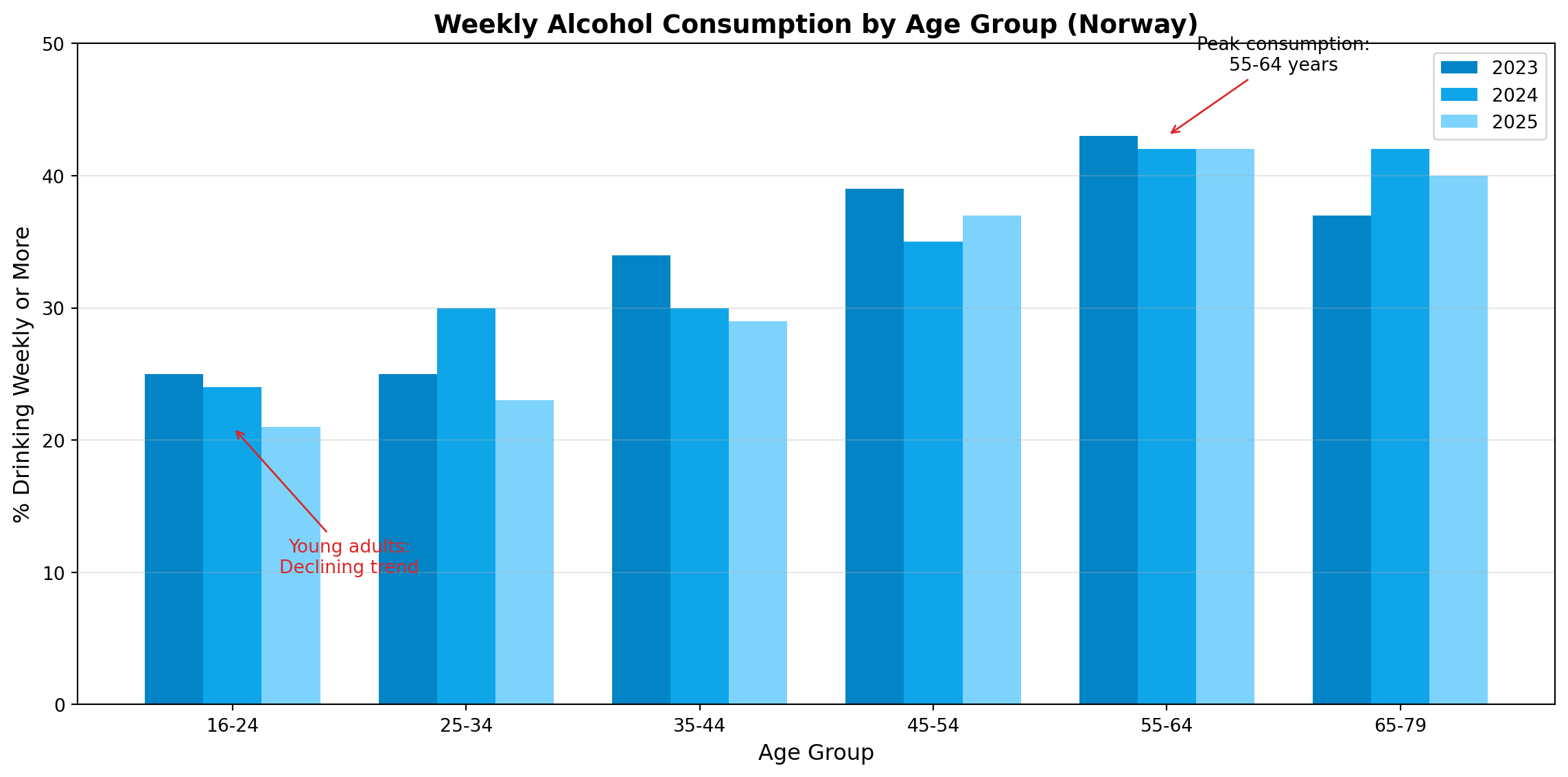 10.5.2 Real Data: Weekly Alcohol Consumption by Age (2023-2025)