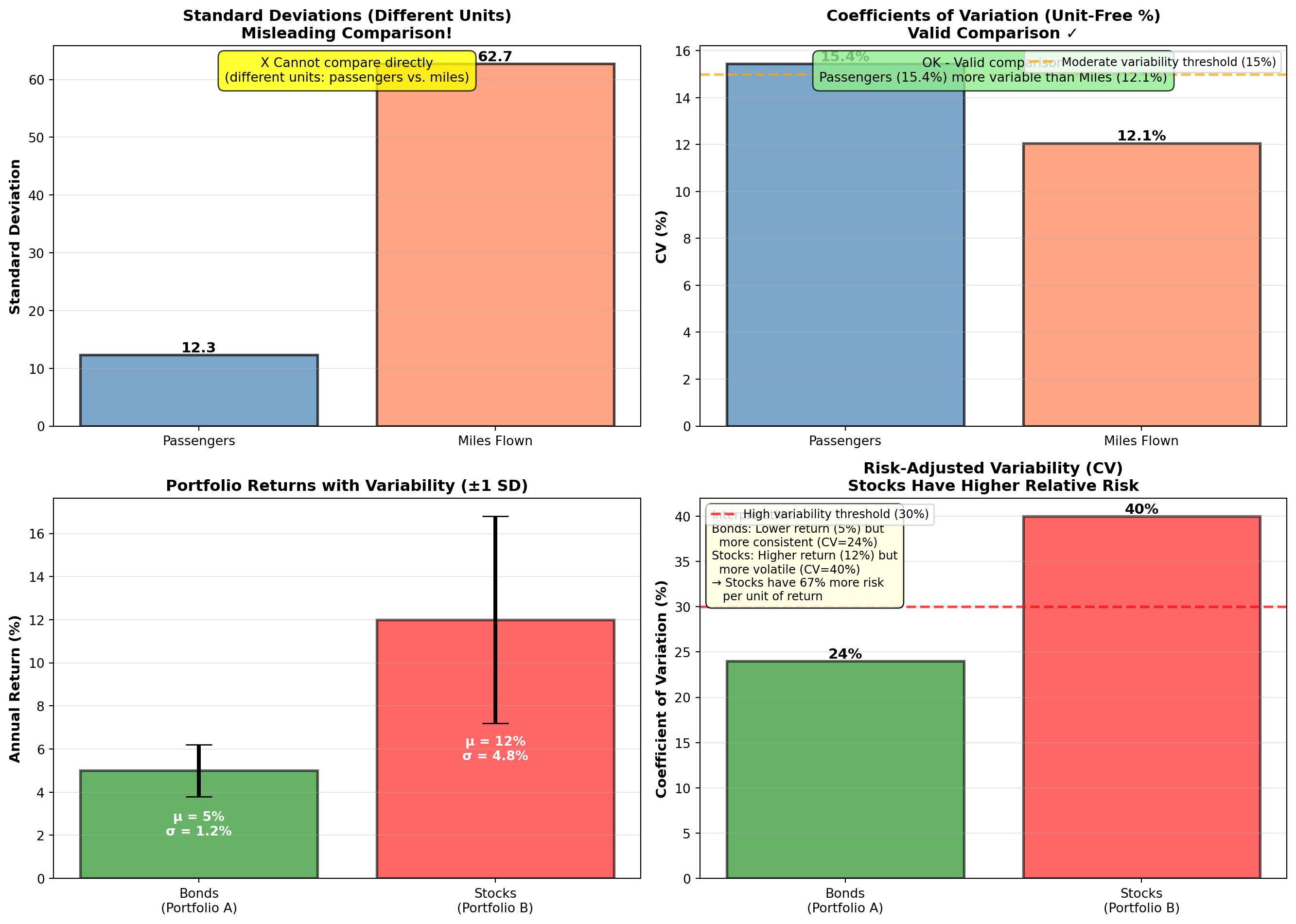 - Compare across different scales: Use Coefficient of Variation