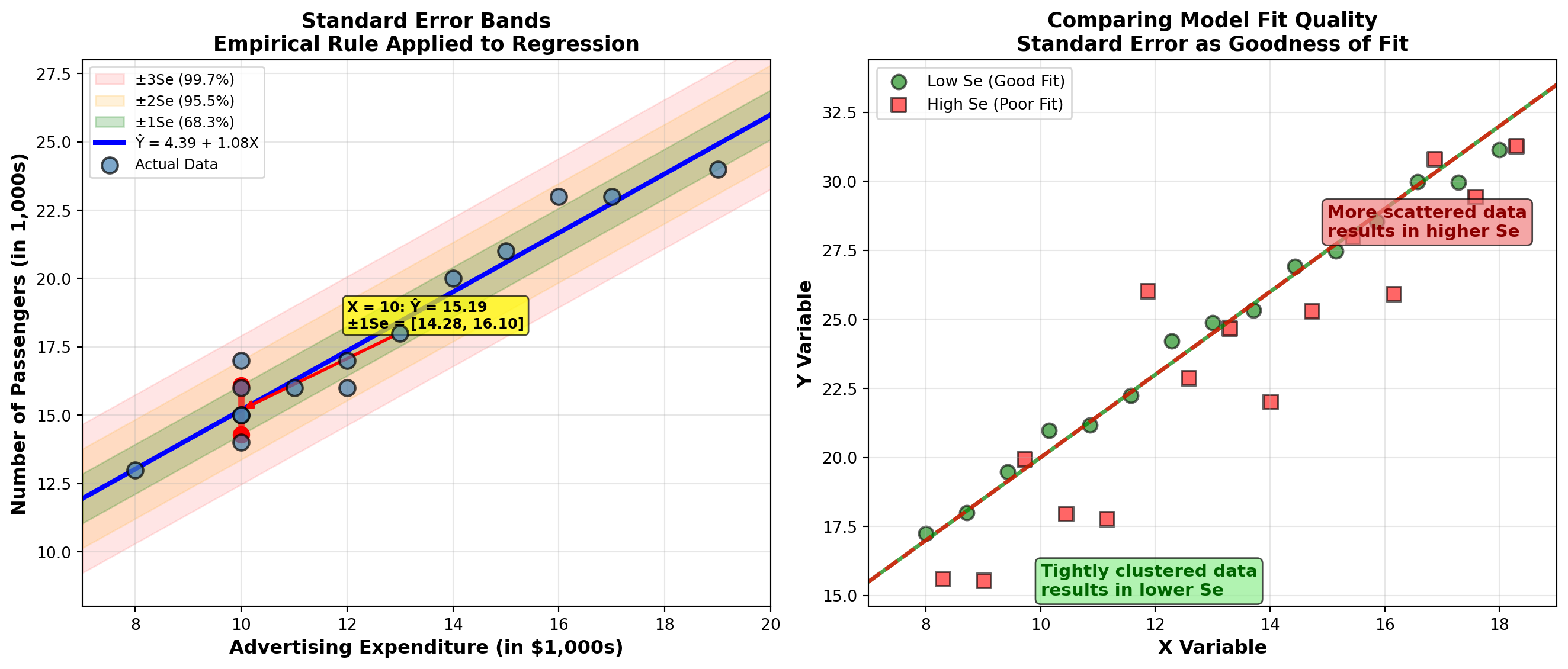 - Quantify risk: Understand variability in predictions (via S_e and intervals)