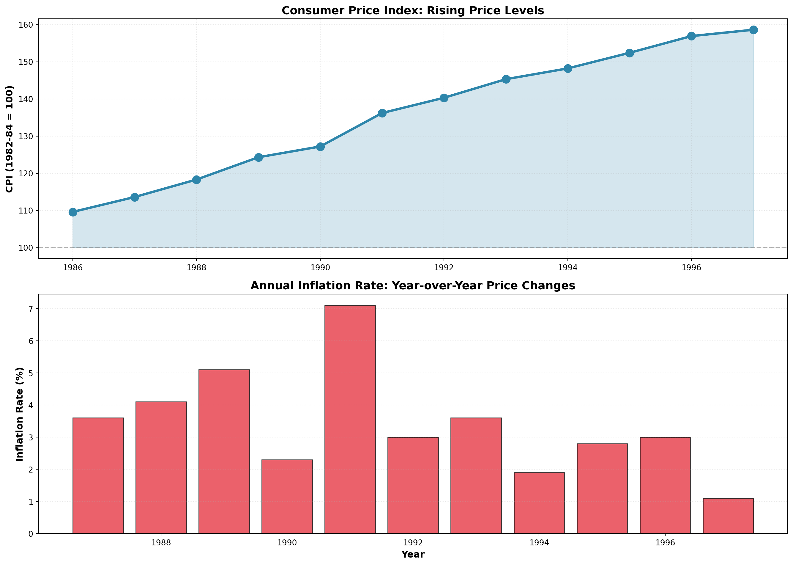 ax1.set_title('Consumer Price Index: Rising Price Levels', fontsize=14, fontweight='bold')