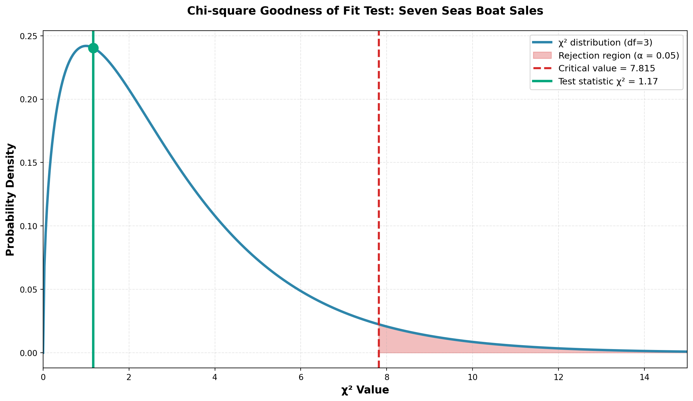 - Small differences → Small \chi^2 value → Do not reject H_0