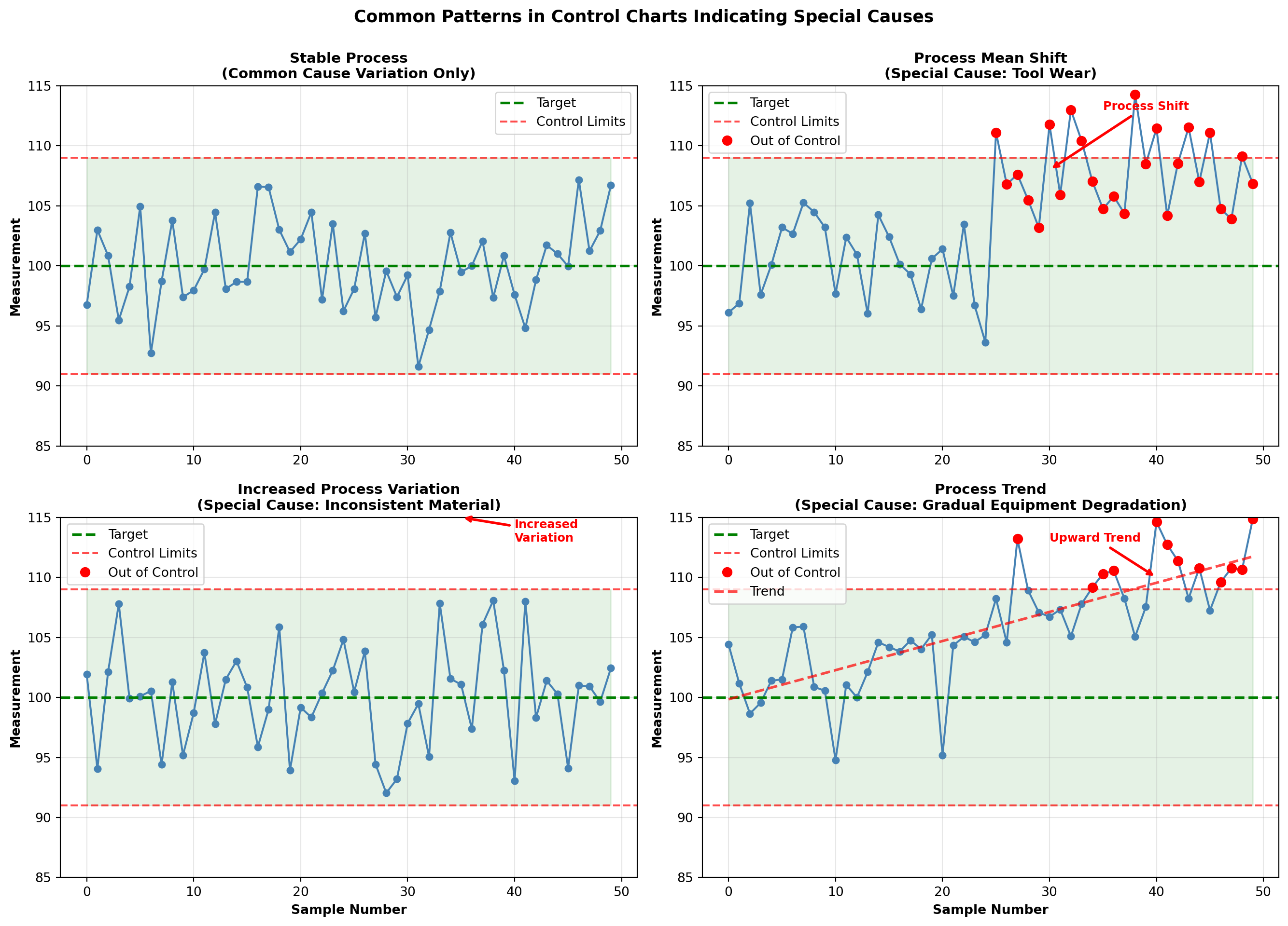 ax1.set_title('Process In Control\n(Common Cause Variation Only)', fontsize=12, fontweight='bold')
